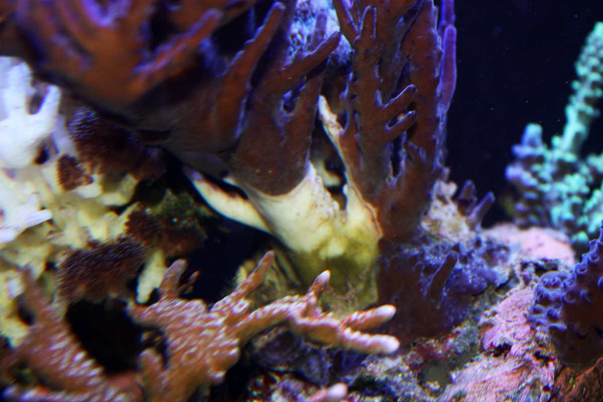 От месец съм с калциев реактор и още се мъча да го настроя, поради това на два три пъти смъкнах ПХ-то и ми се появи цияно. В момента параметрите на водата са в норма и нищо ново не е добавяно от месеци. От няколко дни коралите взеха да избеляват сякаш нещо ги яде прилагам и снимки ако ви е познато и имате предположение какво може да е?
