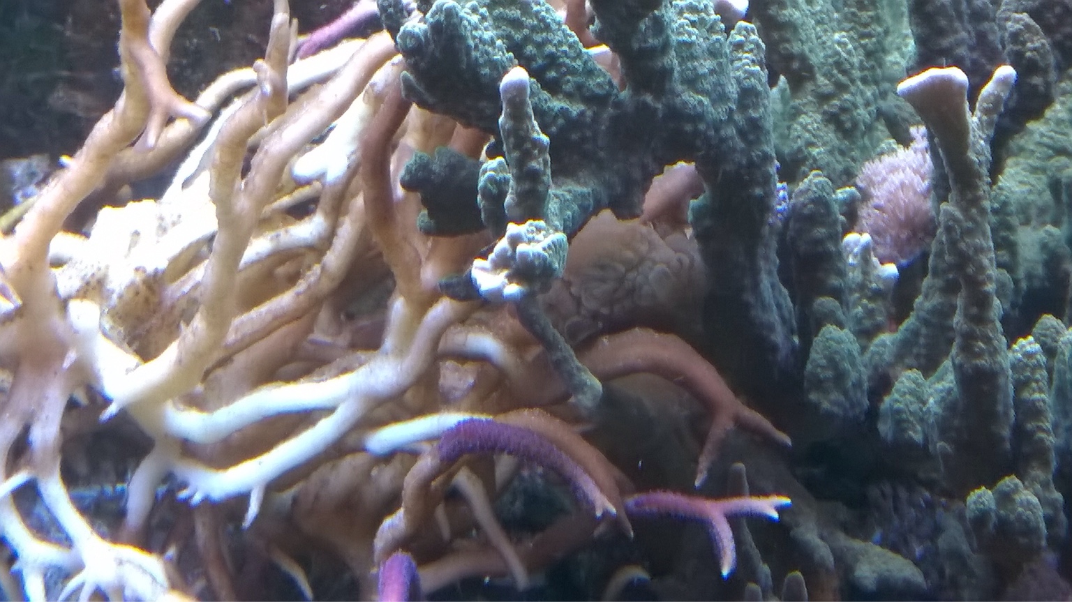 Благодаря за коментарите. Нитратите са ми още доста високи, между 20-50ппм, след всички злополуки в аквариума. Поради това предполагам цветовете малко избледняха едната акропора по-горе е маслено зелено-кафява а беше зелено-синя. Засилих био-пелетите all in one и сега почти ежедневно меря нитратите.