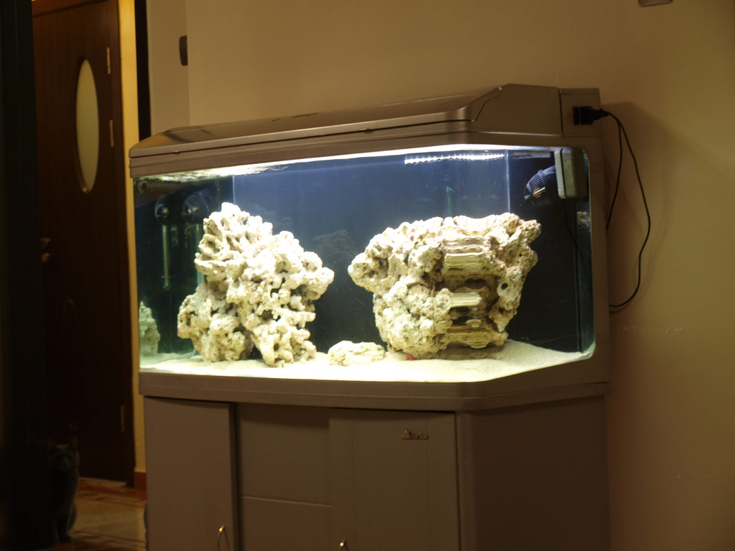 За подпомагане на азотния цикъл сега аквариума е пълен с вода от стар морски аквариум + малко детрит.