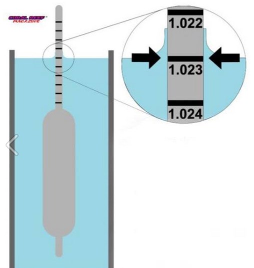 Ако ти е 1,024 си ОК. Мериш правилно нали, делението което е на нивото на водата: