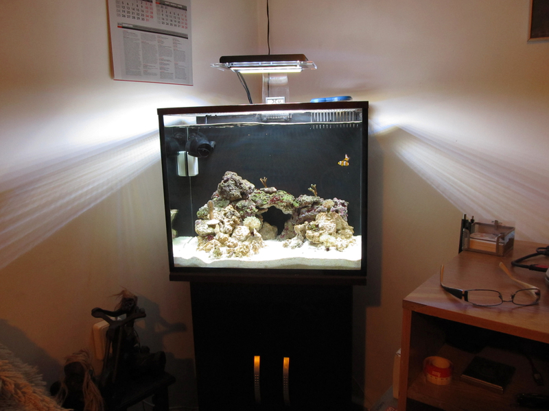 Проблема ми е че SPS-сите които имам не се развиват много добре и причината е слабото ми осветление, въпреки че зелената сериатопора е отворила полипите много хубаво, както и милката(но няма наситен цвят), жълтия хистрикс хич го няма горкия.