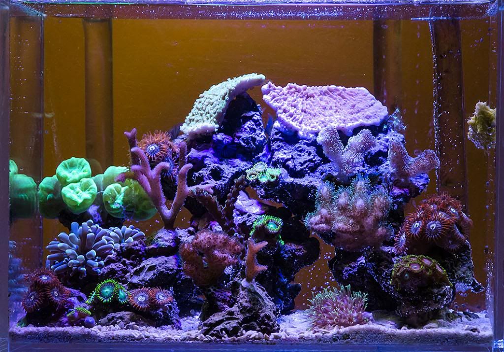 Вчера си направих труда да събера фронталните снимки, които си правил и да разгледам как се развиваха нещата с времето. Направи ми впечатление, как въпреки, че отскоро навлизаш в морското, имаш много силна интуиция кое е правилно и кое би работило - осветлението (в 7 вата осветление има повече мисъл, отколкото в радиона), вкарването на кислород във филтъра и т.н.