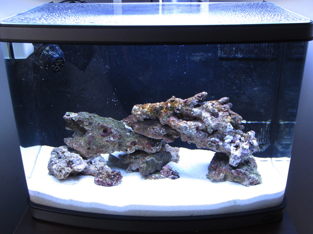 Полипите със зоантус(поправете ме ако греша за името) взеха да се отварят и "събуждат" *YAHOO*. Видях и едно малко охлювче да бръмчи нагоре-надолу :).