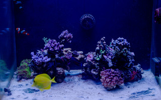 Замислям някакво разширяване, но до края на годината ми се налага продължително да отсъствам и прецених, че точно сега не е момента и минах на временно решение. Големите колонии заминаха в по-голям аквариум, оставих си акропорите/милепорите (е, и малки фрагчета от големите колонии  :-)).