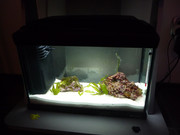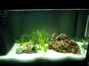 Скоро започнах да правя моят първи соленоводен аквариум. Той е доста малък - 40 литра (поради това, че не мога да си позволя по-голям) и засега в него имам само пясък, два "живи" камъка и водорасли. Чакам в магазина да получат рибки клоуни и смятам да сложа 2 такива, 1-2 скариди и малка анемония.