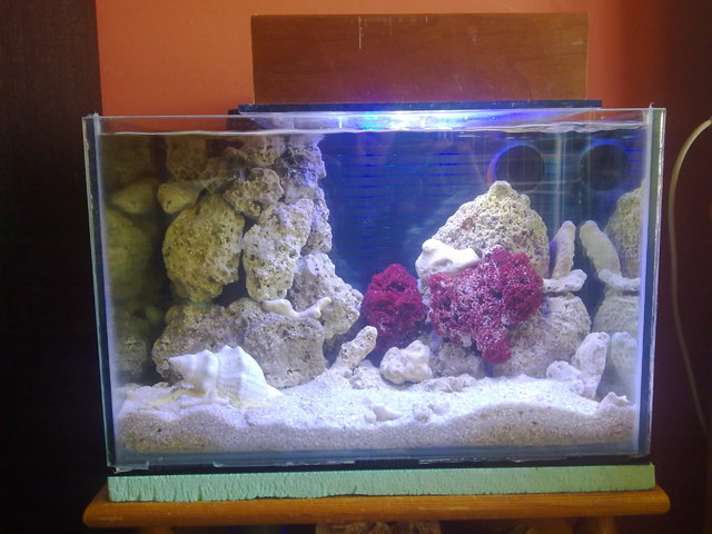 Без да те обезкуражавам, ще кажа едно - Докато държиш в аквата скелети на мъртви корали (и особенно червените) както и рапан, няма да те приемат на сериозно и да коментират, понеже коментарите ще са язвителни  :-) . Не се заяждам,не искам да го приемаш така и аз минах по този път.