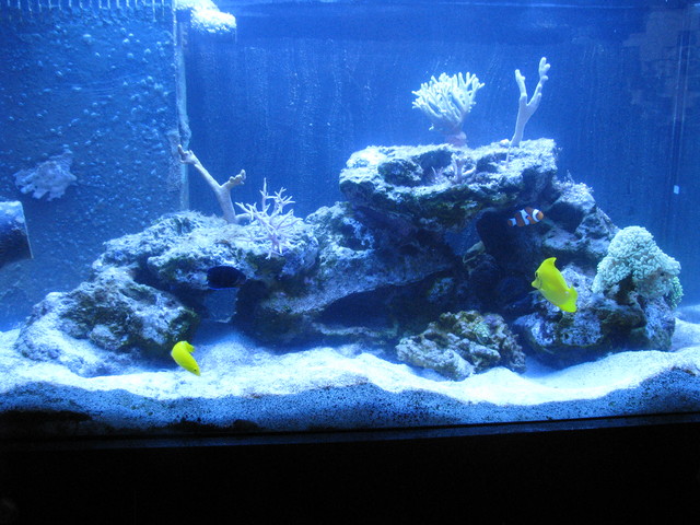 Имам си камъни като в началото започнах с 22 кг. Базови + 7 кг живи (Колко да са били живи?  но това ще ви го спестя). Дълго време  използвах солта на Тропик Марин, в момента използвам Red Sea Coral Pro. Не съм започнал да използвам каквото и да е за справяне с Нитрати защото никога не съм ги виждал в аквариума ми. Имам си празно отделение, което мога да иползвам за рефюджиум, или реактор с биопелти или алгае-скръбър или каквото и да е. М/у другото използвам тестове на Red Sea и контролно на Salifert от един приятел.