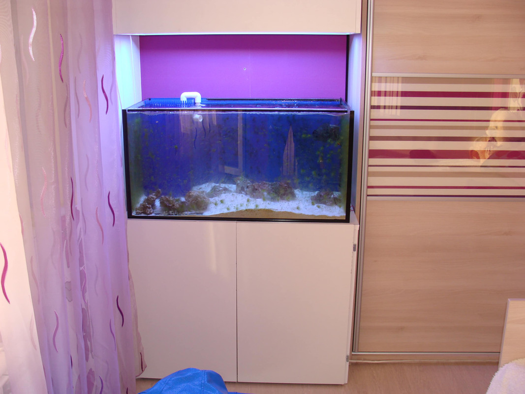 Аквариумът е стартиран на 21.09.2013г. и е с размери 90х45х45 със съмп с размери 70х35х40 общо 280 литра. Обурудването е :