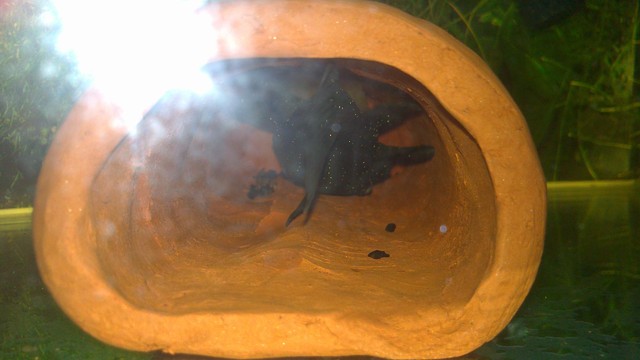 Да обновя малко темата. Бащата отново е с хайвер. Отделен е в 60л аквариум с малките...