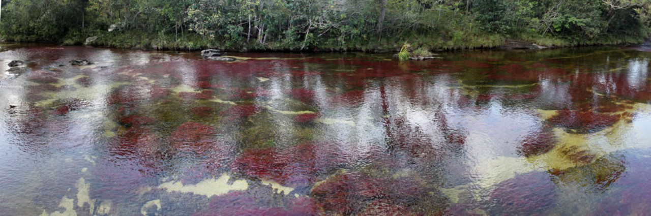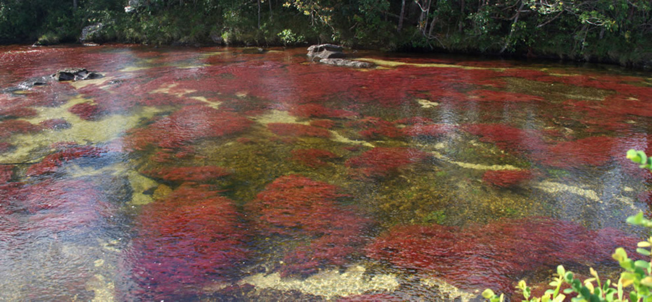 В реката се развиват различни видове алги и растението ендемит за тази река -  Macarenia clavígera (Podostemaceae), тя може да бъде лилава, червена, розова или зелена, в зависимост от осветеността ѝ. Покрива голяма част от речното легло, дори и в участъците където водата тече бързо, клавигерата покрива скалите като килим. Останалите цветове в реката са заслуга на пясъка, камъните, алгите и водата - жълто, черно, зелено и синьо.