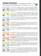 Кристалони се продават и по селскостопанските аптеки на килограм - 2 лв. Всеки цвят има различно съдържане и се набляга на определен елемент. Последната година ползвам предимно тях, но да знаете вдигат нитрати и доста фосфатите. Има и тензо коктейл на кристалон , но не съм намерил все още, а искам от него.