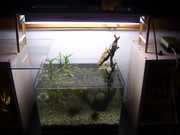Все още не съм мерил показатели на водата, предполагам че е кисела заради почвата и хумуса. За риби не съм се замислял, имам около 30 бебета планорбиси и ги унищожавам механично, 2 ампуларии които са тръгнали отдавна по пътя към вечните ловни полета и нищо друго. Първоначалния замисъл беше скаридарник, но не ми остава време да си купя някакви. Мисля със скаридите да гледам микрорасбори,неони или дребни тетри.