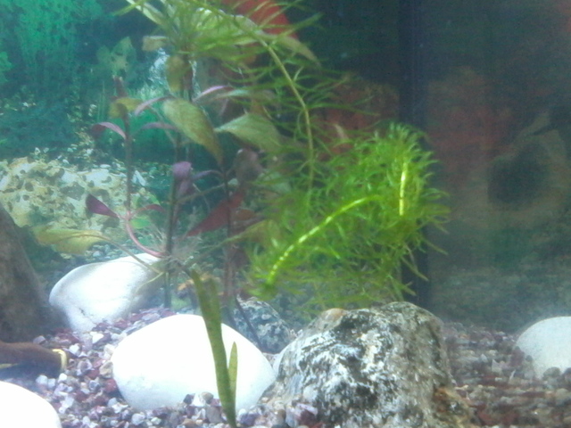 Със зелените широки листа, в средата е Hygrophila Corymbosa(Лимонче). :-)За червеното,малко са неясни снимките и не съм сигурен. :-)