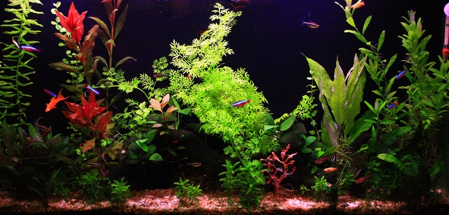 Здравейте, имам аквариум, (95/50/18), който за момента не мога да стабилизирам и съм решил да го започна отначало. И в момента в него има доста растения, но нещо не успявам да спра водораслите, като една от причините е предполагам липсата на CO2 (няма удобно място където да сложа системата). Друга причина според мен е субстрата, който в началото въобще не беше замислян за такъв тип аквариум. Мисля да стартирам наново аквариума като бавен, както е описано  в доста теми. Въпросите ми са следните: какви растения ще са подходящи, какво осветление да сложа, защото въпреки малкия литраж височината не е малка и всякакви други съвети, които биха били от полза в случая. Приемам и конкретни идеи за оформелението и т.н. Пускам снимка, на която се виждат повечето растения в аквариума към момента, за да могат да бъдат включени в новия подбор. Предварително благодаря!