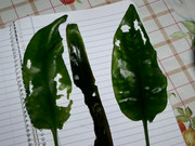 Според мен е липса на хранителни вещества. При моите растения се наблюдаваше подобен ефект когато криптокорина афинис се разрастнаха толкова колкото при колегата. За да се преборя с това слагам топчета в грунда и сега растенията ми с големи коренища вървят много добре.