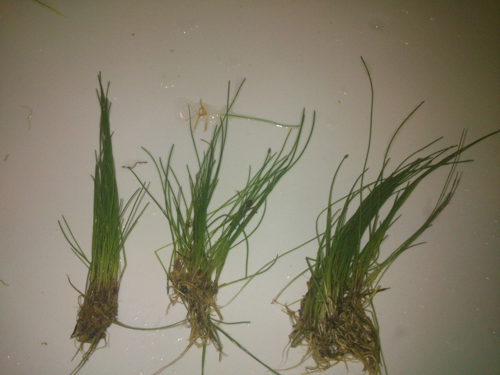 Днес, възползвайки се от това, че денят ми беше свободен и времето беше уникално, се разходих до Панчарево и намерих тонове елеохарис, мисля че е ацикуларис. Взех и 2 стръка от по-големия, мисля че е вивипара и както си е директно с калта го боднах в една тарелка да видим какво ще стане. Иначе, видно от снимката, ацикулариса, изчистен и обезпаразитен, го боднах в аквариумите и изглежда много добре :)