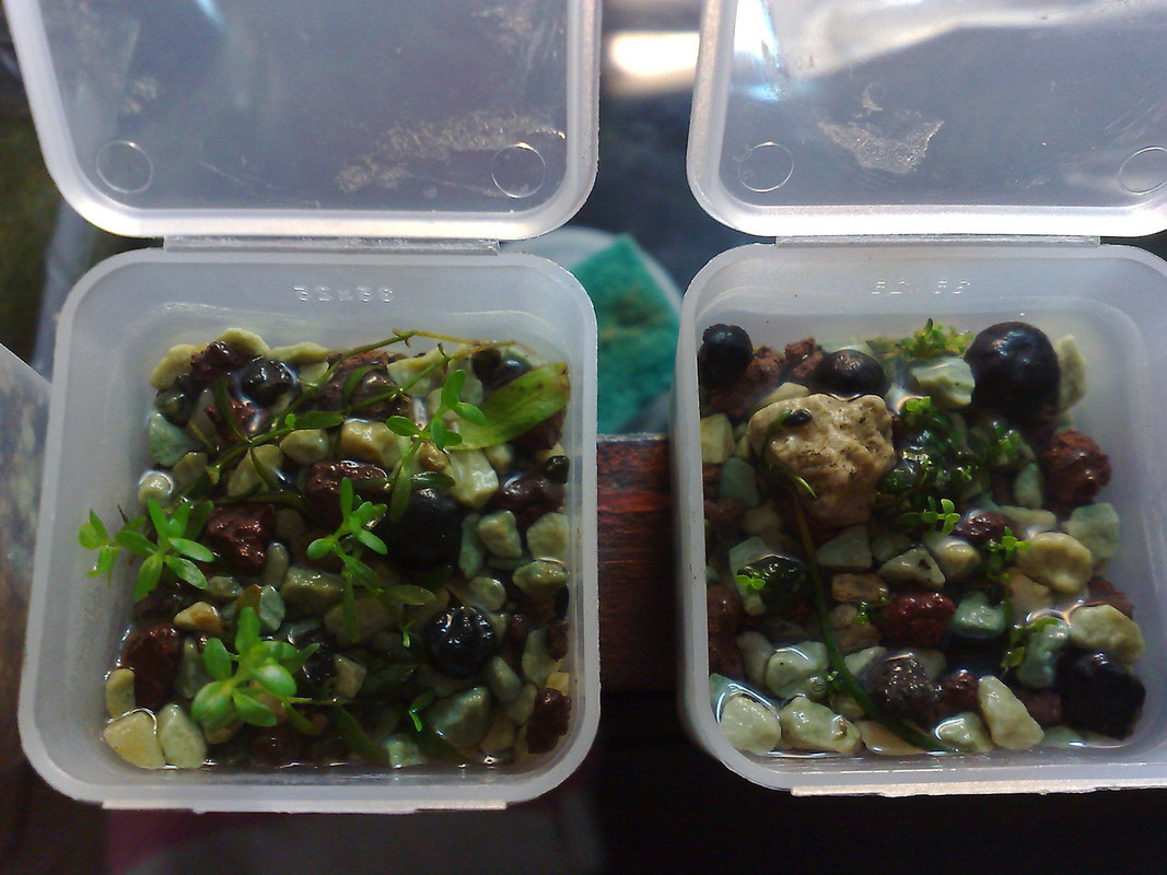 Не е кой знае какво но реших да пробвам в едни кутийки малко глосо, Micranthemum micranthemoides и Elatine hidropiper. За сега има най голям успех с глосото расте като лудо  :-)