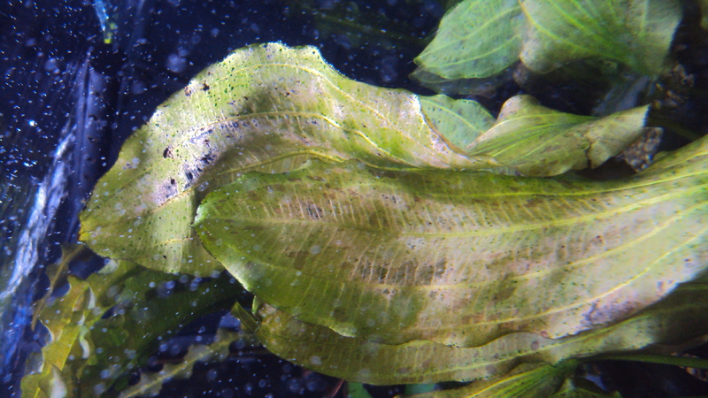 Здравеите колеги.Може да се каже че се отървах от ксенококуса обаче сега имам  друг проблем.Растенията ми получават   някакви некротични петна по листата.Прегледах доста теми във форума и мисля че това е недостиг на фосфор.Торя със акваформула стандарт по 1 гр.на седмица co по едно балонче в секунда.Прилагам малко снимки да видите и да кажете какъв е проблема и евентуално как да постъпя.