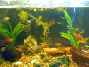 *bg*Пак съм аз.Днес ходих до река Дунав,в района на село Пиргово-Русенско,и там открих на около метър на вътре в водата едно растение,което познавам,като "кабомба"и то от червенеещият вид.среща се често на през 5-10 метра 1 от друго разпръснати на по 2-3 стебла с коренче и дължина около 30-40см.Наджапах смело -щото такова нещо не е за изтърване и натъргах 3 корена и 1 друга трева дето не я познавам ама и тя под водата се въдеше,та награбих ги и 2те и след чешмяна подмивка ,колкото да падне тинята от коренчетата ги "интегрирах в аквариумния хабитат"смело и безразсъдно  *CRAZY*.Кво ще стане-???нз.ама ще видим дали ще се хванат.до сега квото съм боднал се е оцеляло -ще видим то и с водната ми леща,пак така стана.прилагам снимки...