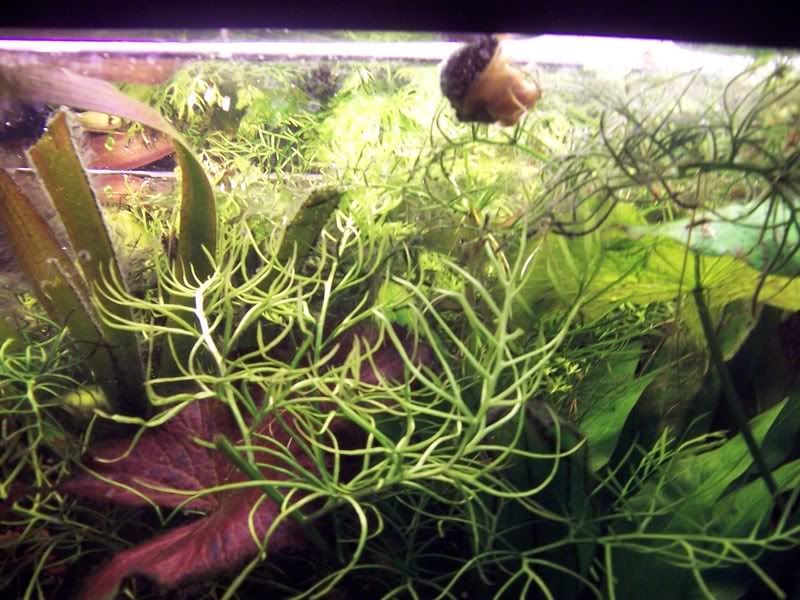 и аз виждах такова дъбче в един зоомагазин доста голямо кам 25 см. стъблото и листата му бяха така на гъсто сеедно си пуснал една топка сено в аквариума - много ефектно беше станало