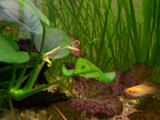 Здравей!Нимфеята ти е станала хубава-харесва ми!До колкото съм запознат тя се храни предимно с корените си и ако не получава от тях необходимата храна,колкото и торове,светлина и ЦО2 да има във водата си заминава.Струва ми се,че ако е за едната валиснерия и анубиас да слагаш толкова тор,а и ЦО2 няма нужда.Може би малко Калий и Магнезий от време на време.