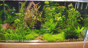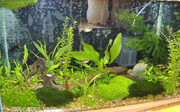 В първия аквариум осветлението е 0.7 Вт на литър, а във втория, малко повече от 0.5 Вт на литър. Ричията се беше развила много добре като плаваща. Направо беше като чимове. След това я привързах с тънко рибарско влакно към плоски камъни.