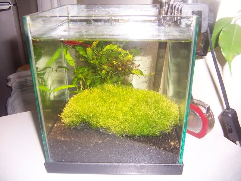 Не мога да се сетия къде, но някъде по сайтовете със снимки гледах един аквариум с дъно мъх бяха снимали как са го направили. Мрежа - приличаше на тези стройтелните дето са на ролки от типа пластмасови, отрязана форма и тук там сложено по малко мъх и дадена снимка на същото след време мъха беше покрил мрежата.
