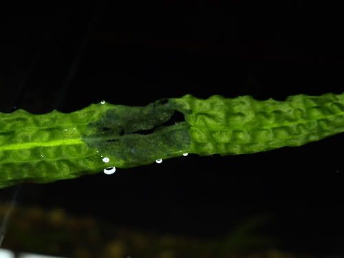 Листата направо се разлагат. От това, което четох, прилича на Криптокоринна болест. булвално за една вечер от здрав лист на Гигантска Криптокорина остава половин! Тя остана с 1 лист (от 5-6). Пуска веднага нов лист, който не живее повече от 10 дни и погива... Останалите ниски Криптокорини не се скапват с такава скорост. Забелязах и дупчици по листата, което може би е липса на Калий?