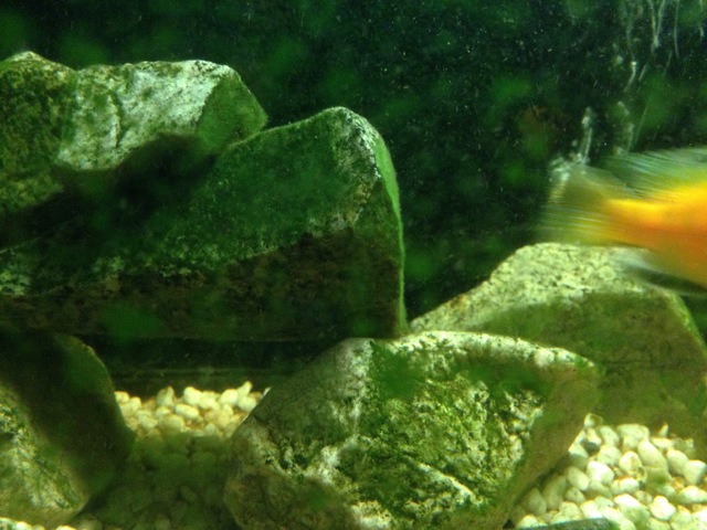 Здравейте, аквариума ми е по наследство от една раздяла и не съм в час много, появи се следния проблем:  Зелени налепи по стъклото и камъните, най странното е, че там където е филтъра няма, а има в другия край на аквариума. Имам една магнитна четка и като мина през това зеленото не се маха грам. Какво е това? Как мога до го оправя? Благодаря ви ! *bg*