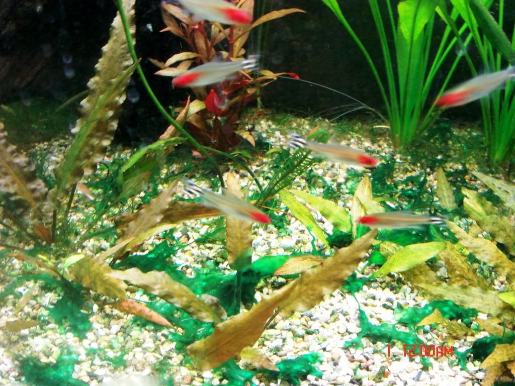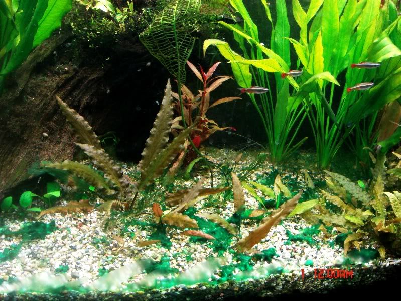 След третиране с антибиотика пак се появиха тук там по малко синьозелени, но ги махам с маркуча и мисля че нещата са овладяни.