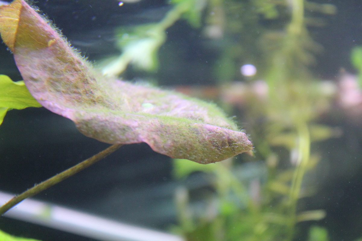 Ог известно време наблюдавам появата на някакви водорасли по част от растенията предимно авно растящите и не мога да определя какви точно са и какво да преприема.Моля за съвет от знаещите.Аквариума е 240 литра стартиран е преди няколко месеца филтрация jbl 1500 подавам въглероден диоксид 2 мехурчета в секунда. пх то е около 6.4 генералната е 4.подавам по 5 мл глутар алдехид дневно.Торенето е 5 мл  профито и макроелементи по следната схема