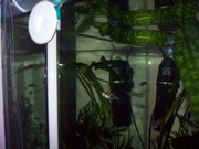 След като загасих осветлението и се вгледах, забелязах на стъклото което е  с черна хартия за фон петно от водорасли. Има ги само по това стъкло (поне по другите не забелязвам).Не мога ги заснема, не се виждат на фона.  Аквариума е 70 л. на месец, два пъти сменям 15% от водата,не е гъсто населен: