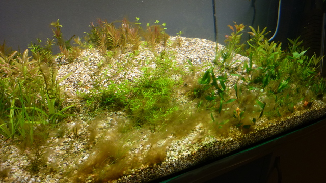 Аз така или иначе му бях вдигнал мерника на белия кварцов пясък, та покрай филтъра смених и дъното, поизчистих растенията, спрях ЦО2, опреснявах често водата и нещата се оправиха. Сложих и амановци, но мисля, че не го бутат, ИзиКарбо също не ги впечатлява.