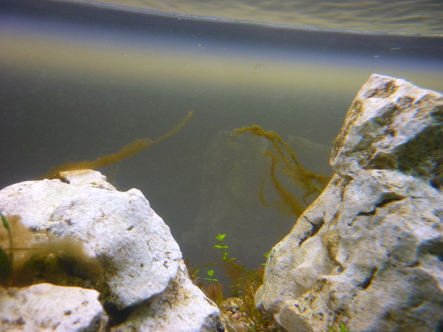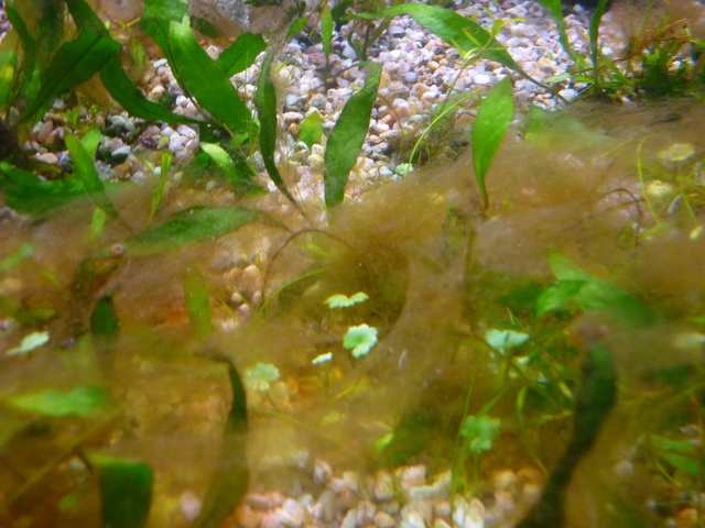 Колеги от около месец започнаха да се появяват нещата от снимката.Имал съм нишки имал съм рога,имал съм какво ли не.Обаче тези растът като растения от грунда и когато хвана и измъкна се вдига заедно с няколко камъчета и не се отделя лесно.Видимо е расклонен вид.Има ги само долу по грунда.