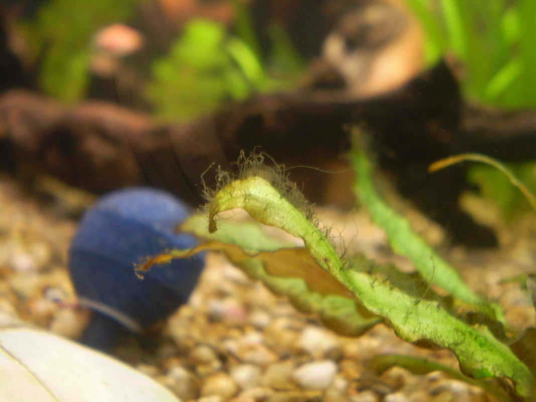 Здрасти, имам същия проблем, някой ми каза да сменям по-голямо количество вода при седмичната подмяна, което се оказа голяма грешка, стана мазало от еленови рога, в един аквамагазин (от, който съм много доволен, но да не правя реклама) ме посъветваха да сведа смените на вода до минимум, повече бързорастящи растения, глутаралдехит и СО2 , следователно ги послушах, сега почти съм се изчистил , успех.