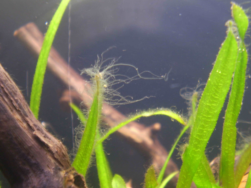Здравейте, малко развитие по темата. Вече почти седмица добавям по 2мл изикарбо, на анубиаса директно впръсквам по най-засегнатите листа. Валиснерията се развива перфектно, роголисника и той. Осветлението е на 8ч, рибките са същите без трихогастера плюс 8 неона малки и 2 молинезии, смяна 30% веднъж. Водораслите видимо намаляват, мъховете на анубиаса станаха бели. Като цяло съм доста обнадежден. Сега обаче имам друга грижа, листата на валиснерията избледняват и се появяват дупчици а върха им е леко извит. Явно има недостиг на калии и магнези, снимки утре ще кача.