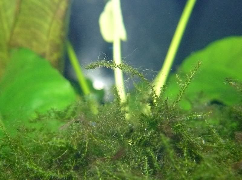 В началото и моят мъх хвана водорасли- рога и брада ,но с по интензивно сменяне на водата се оправиха нещата за около месец.