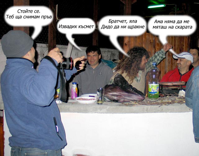Дидо много страшна снимка си ми направил, дори и децата не можаха да ме познаят. А този зад мен със светлосиния анцунг е Илко (Ветеран).