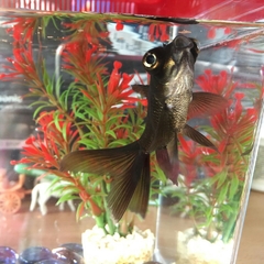 Здравейте. Подариха ми телескопче заедно с аквариум 2.5л. Никога досега не съм имала риби, но изчетох всичката възможна информация за отглеждането на този вид рибки. Като за начало разбрах,че е проблем големината на аквариума. Но рибката ми като че ли се приспособи и ме е страх, че ще я стресирам, ако я преместя. А пък и нямам място за по-голям аквариум. Засега тя изглежда добре, но понякога обикаля като луда насам натам. Има само едно малко растение, нямам филтър или помпа, за да не заема място. Използвам капки за пречистване. Сменям част от водата през ден, защото понякога рибката ми седи на повърхността и жадно поема въздух. Когато сложа хладна вода ,се успокоява *thanks. Толкова голям проблем ли е големината на аквариума и няма ли да оцелее и да е щастлива в този, при положение че точно се приспособи? И какво означават резките движения с мърдане на перки и опашка и гмуркане от повърхността надолу? Щастлива ли е Блеки или не?  :buff: