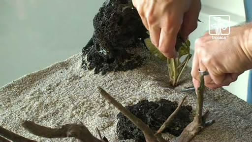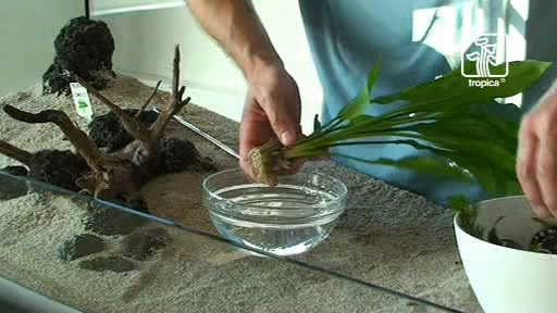 В аквариум е най-добре да ги прикрепите за корени или камъни. Това е важен подход за създаване на Nature Aquarium. Прави се с помоща на здрав черен конец или просто чрез напъхване в някой процеп.